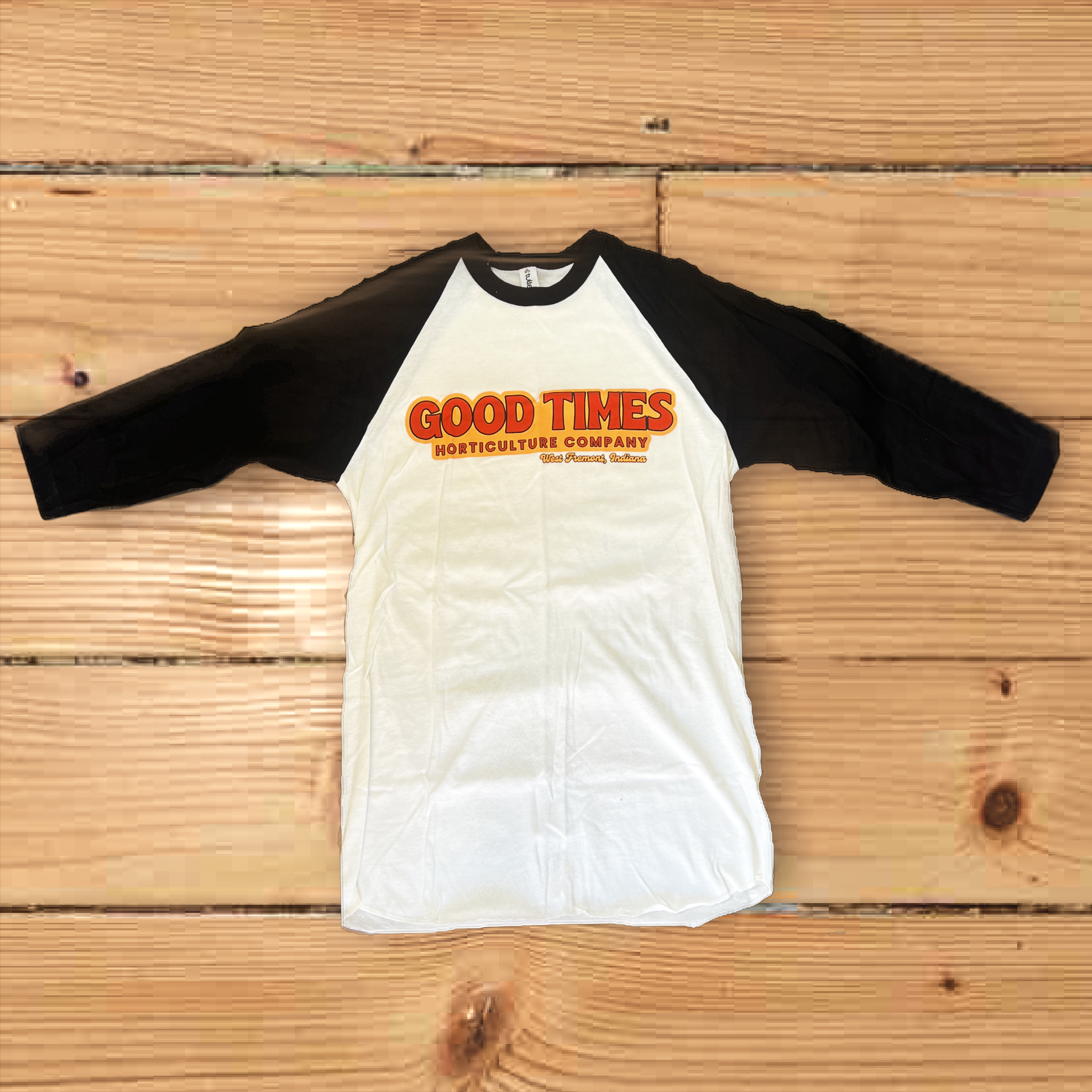 Bright green tee featuring our orange logo.